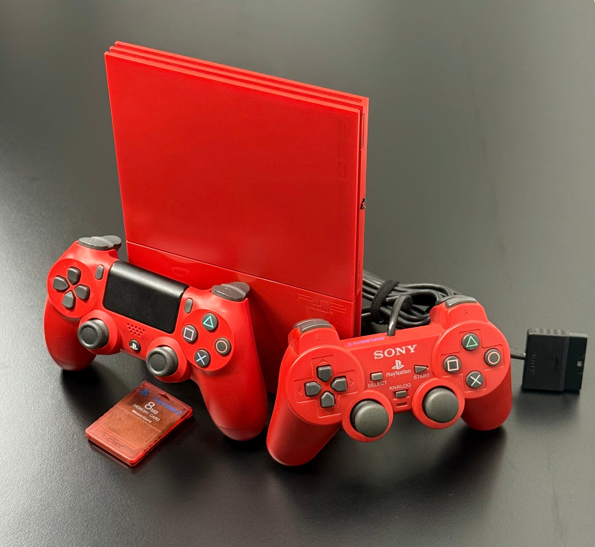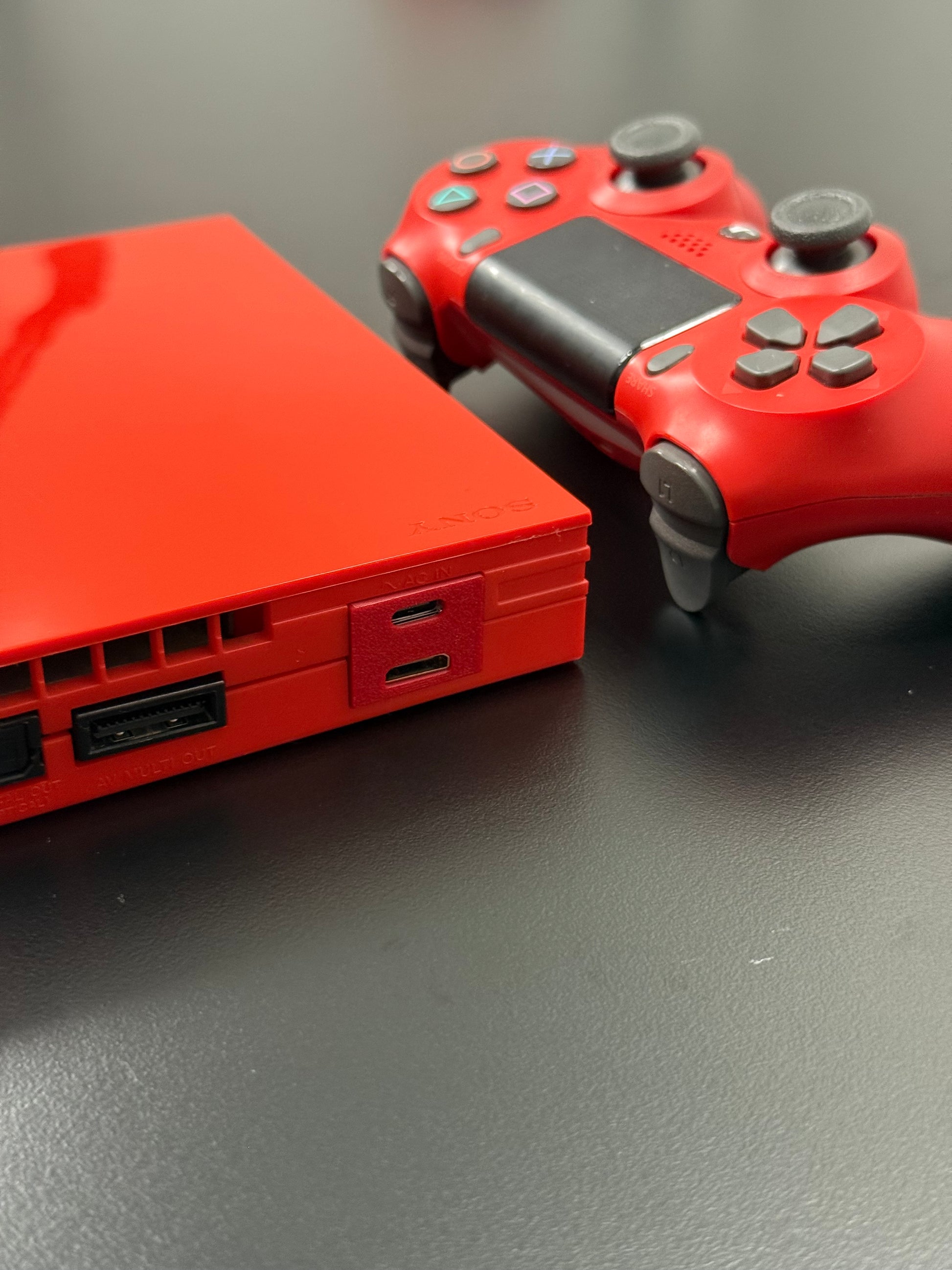 A PS2 with these options is unique in itself, but the Red Cinnabar PS2 is a SCPH-90000 model which is not officially supported by PixelFX and no kit exists for this model currently.